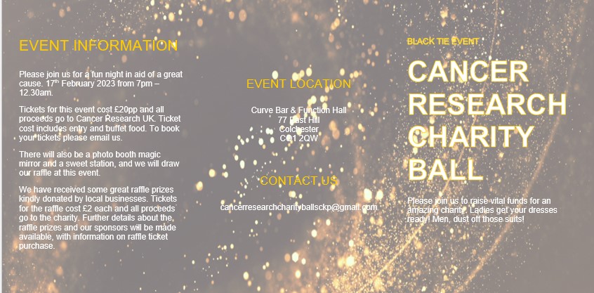 A message from Sarah Crace at Colchester: Hi all, I am planning a charity ball in aid of Cancer Research...