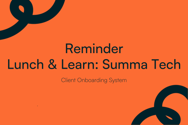 Hi all, As a reminder, our Summa Tech Lunch & Learn which will share more details on our Client Onboarding...