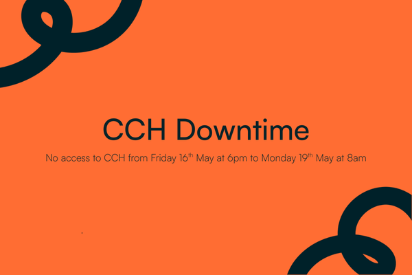 CCH on all sites will be unavailable from 6pm, Friday 16th May until 6am, Monday 19th May for the Time...