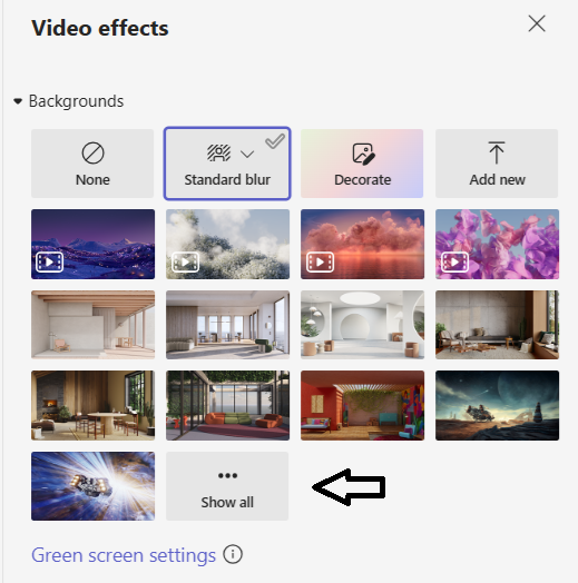 Then, on the right hand side you will see available backgrounds appear, please click “Show all” at the bottom right: