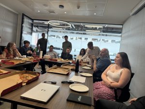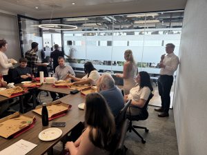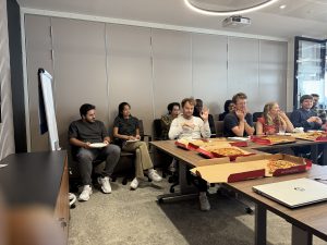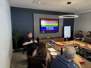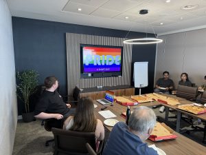 In our Stratford office team members gathered for a pizza party, fostering connection and celebration with a pride-themed quiz organised by Rob Forbes.